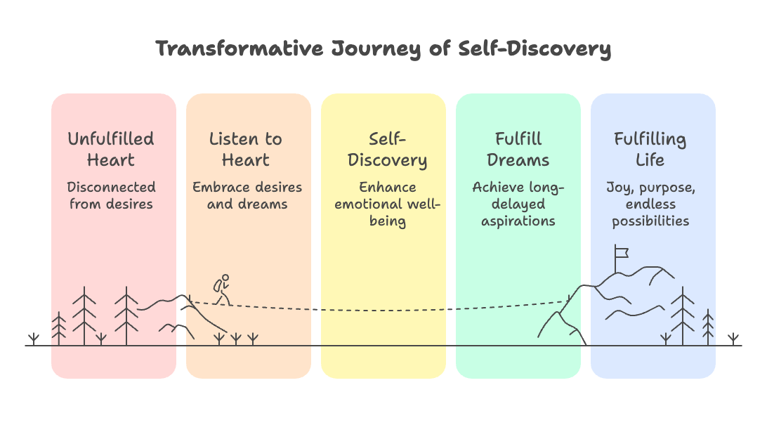 Adopting your heart's desires can lead to a transformative life experience, enhancing your emotional well-being, increasing your self-awareness, fulfilling long-delayed dreams, and strengthening your connections with others.