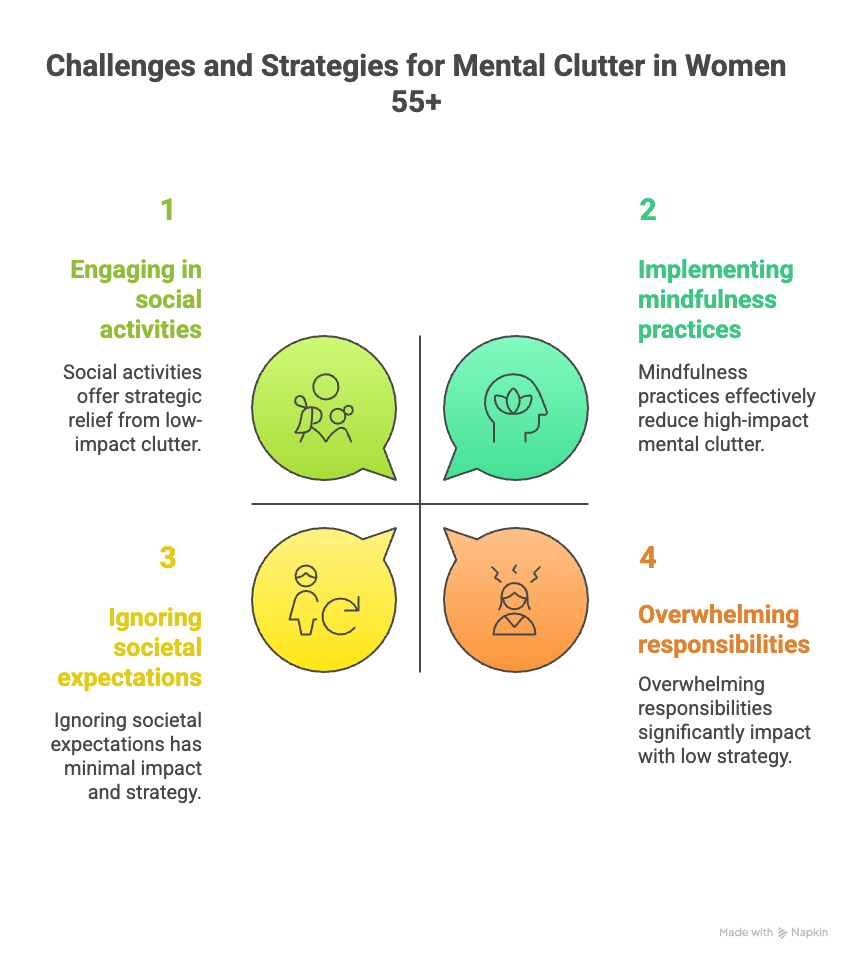Mental clutter can significantly impact women aged 55 and above, accumulating over time and intensifying with age.