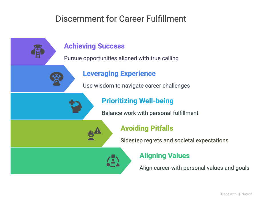 Discernment is crucial in aligning career decisions with one's passions and aspirations.